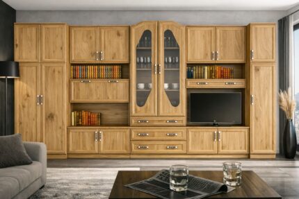 Zestaw ATOS jest doskonałym wyborem dla tych, którzy we wszystkim szukają klasyki. Prosta konstrukcja i łatwe utrzymanie znajdą swoich fanów. W meblościance znajduje się wiele praktycznie rozmieszczonych schowków, które pomogą Ci zachować porządek, a dzięki otwartym i przeszklonym półkom podkreślisz swoją oryginalność stylowymi dodatkami. Meble są pojemne i dostępne w różnych kolorach.