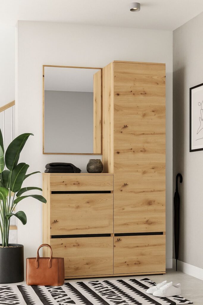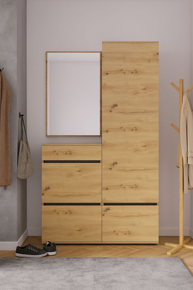 Mebel wykonany z laminowanej płyty wiórowej.